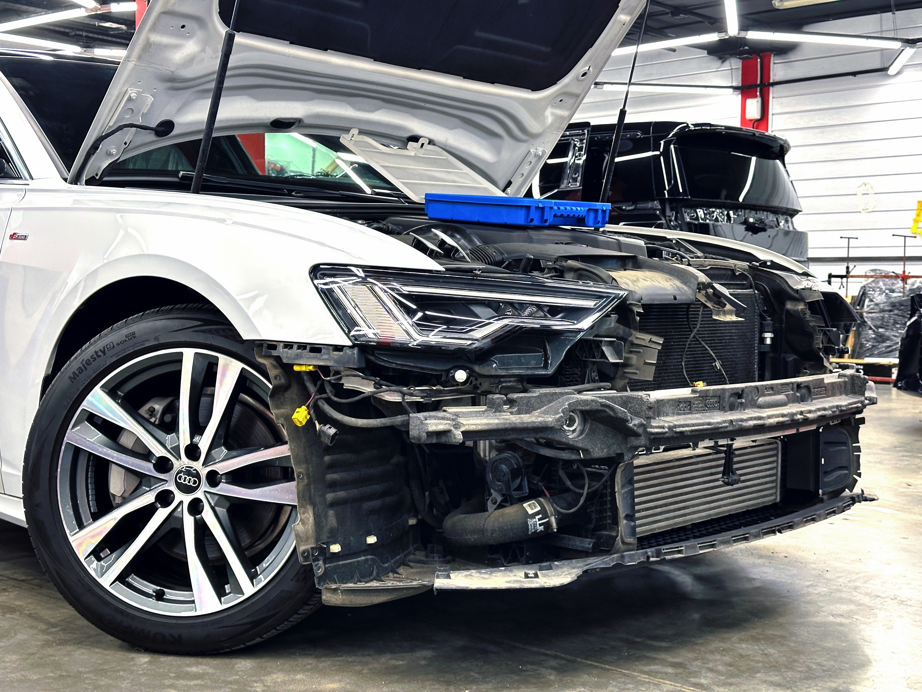 Только после всех выше перечисленных работ наша команда перешла к оклейке сатиновой пленкой и антихромом. Спустя два дня мы смогли увидеть результат, который поразил не только клиента, но и нас. Для того, чтобы владелец Audi мог долго наслаждаться насыщенным цветом, мы нанесли керамику и антидождь ППС.